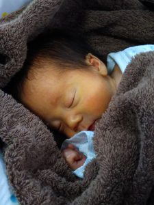 準備した肌着に着替え、クーハンに入れて帰宅。